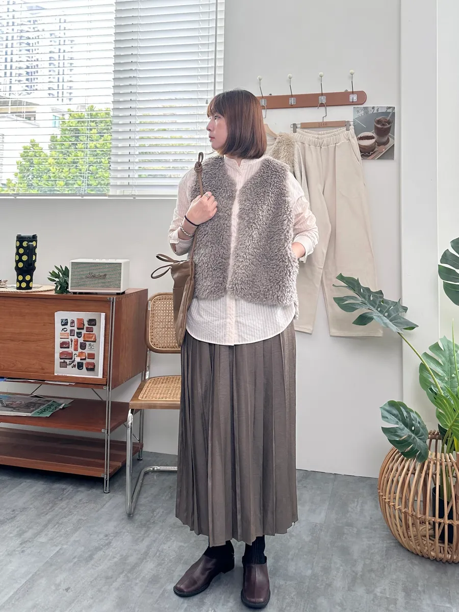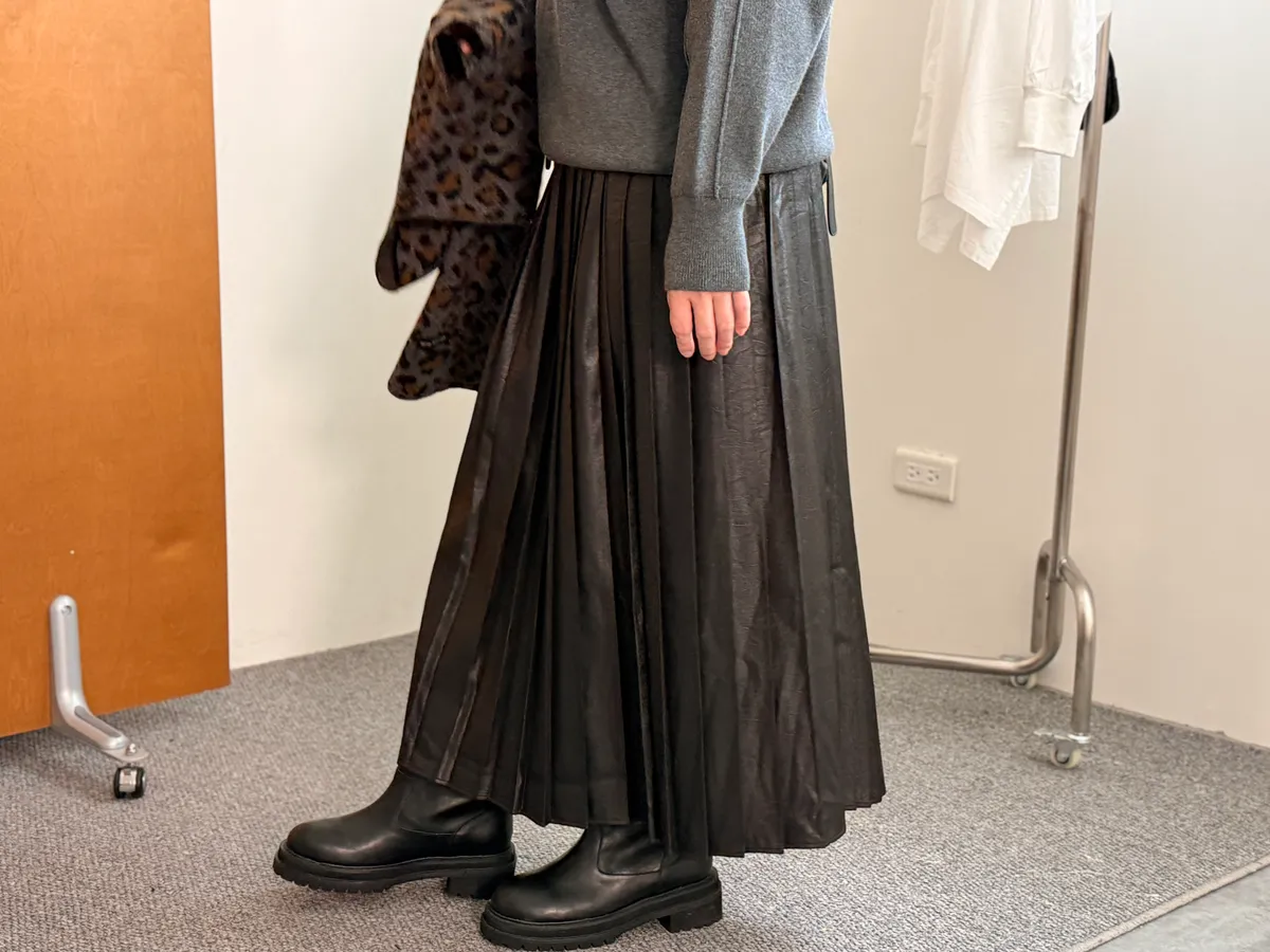 J010 光澤感百褶裙