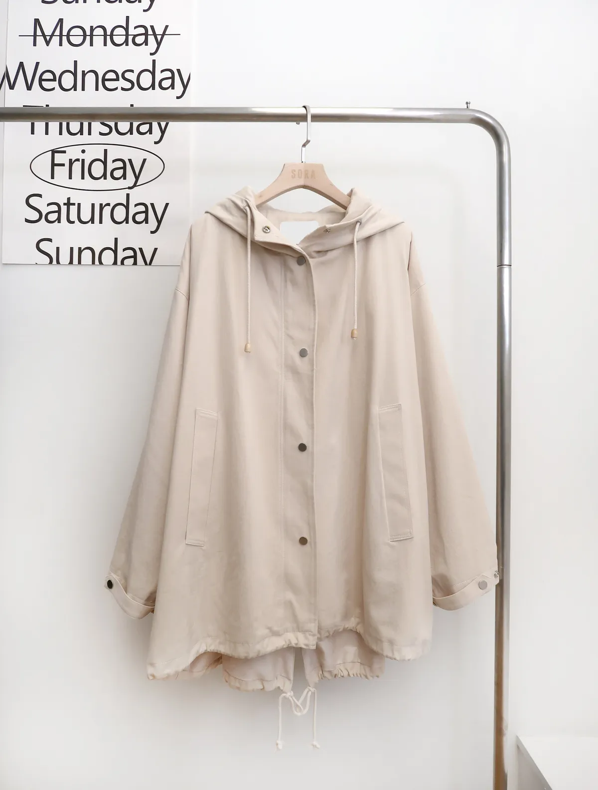 S043 斗篷感長版連帽外套