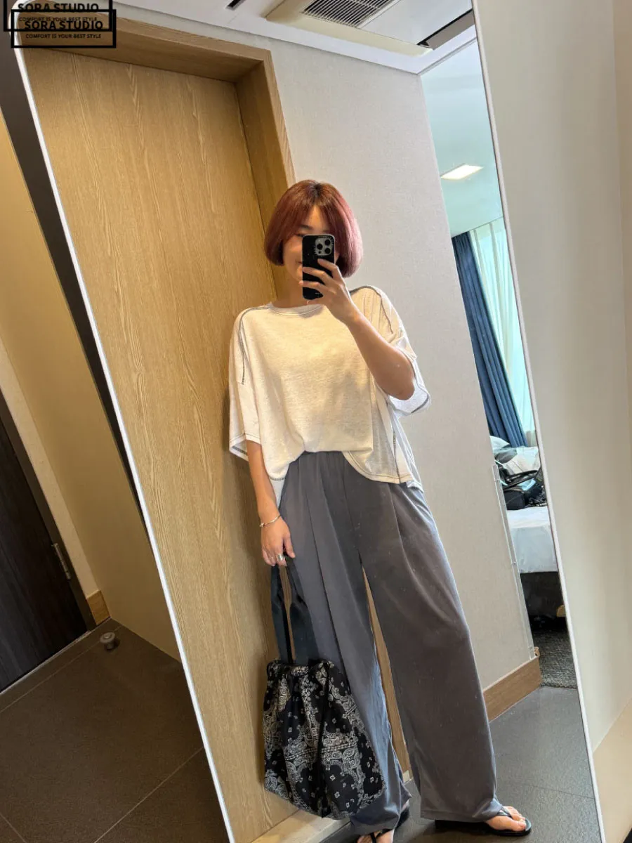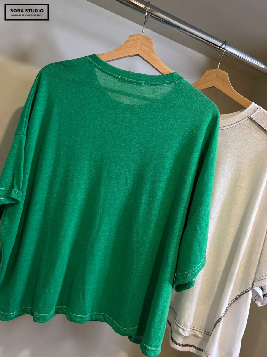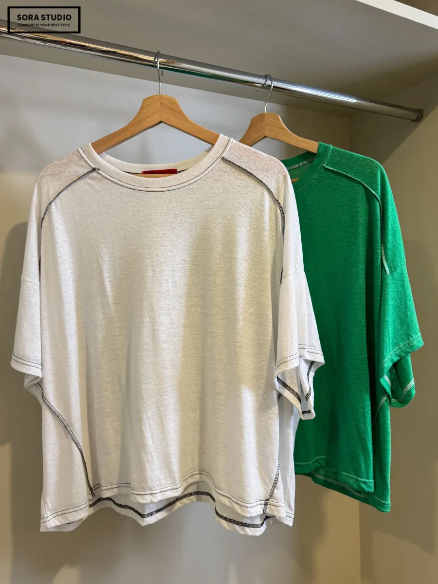 F174 撞色考克車線寬鬆棉T