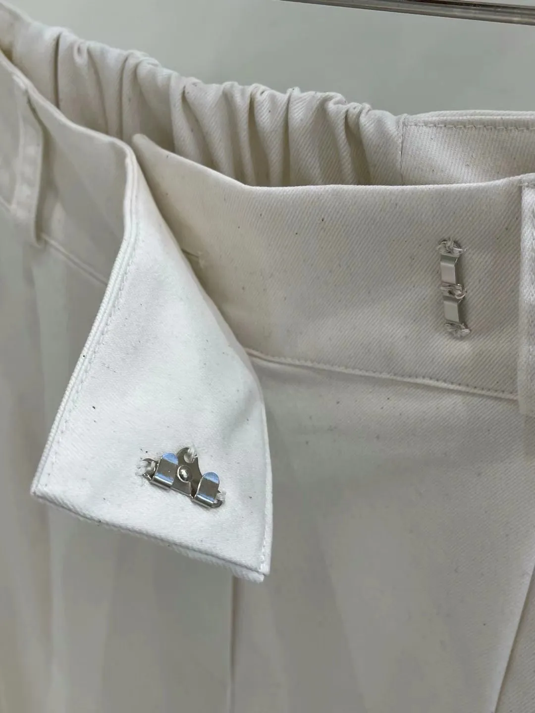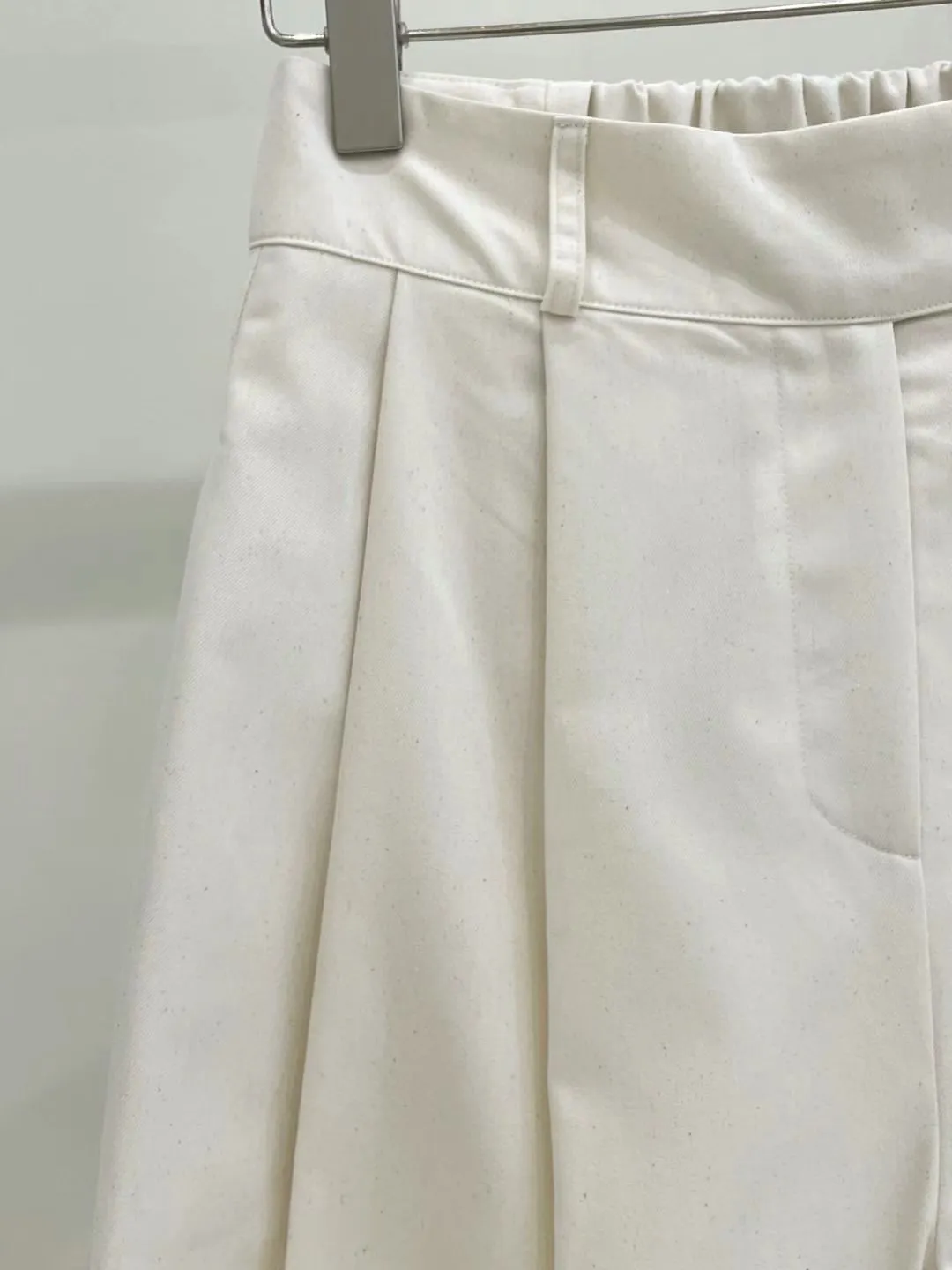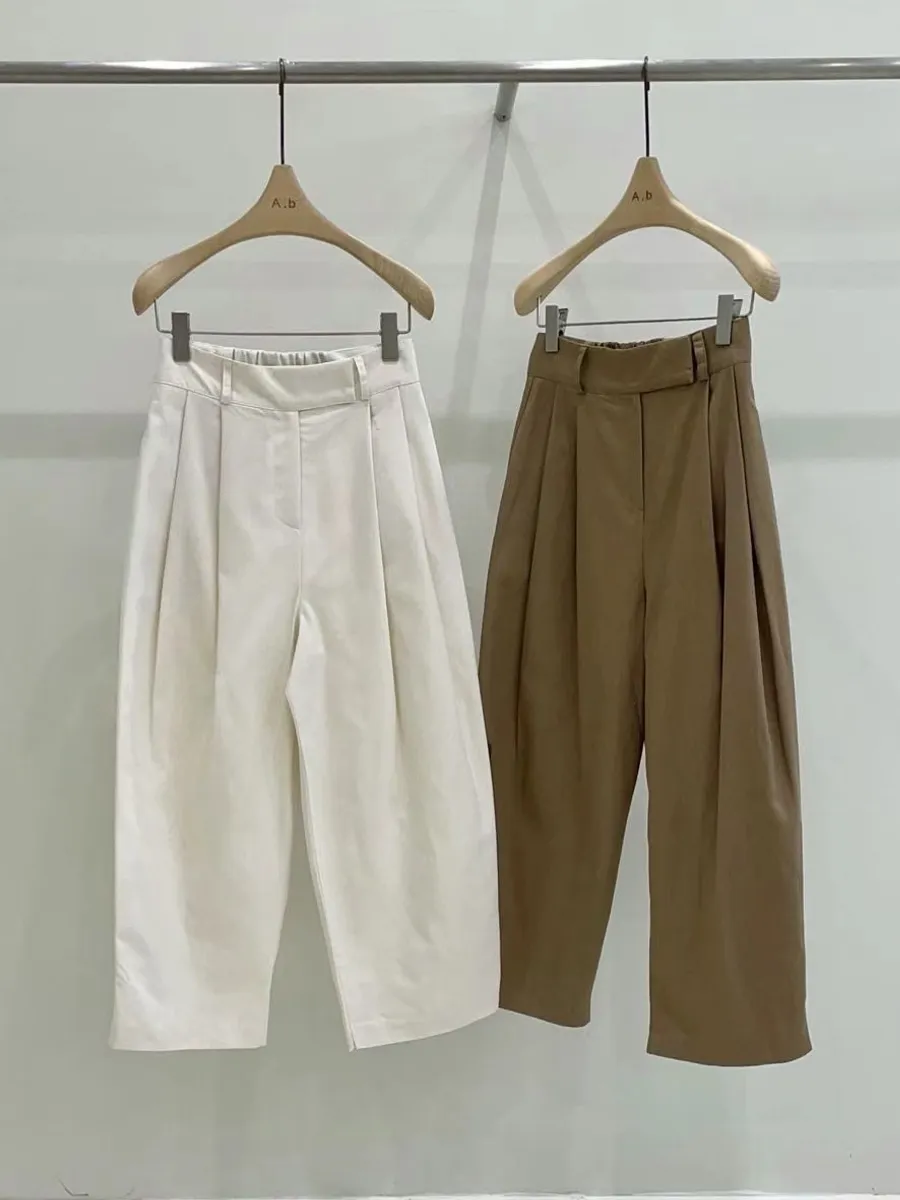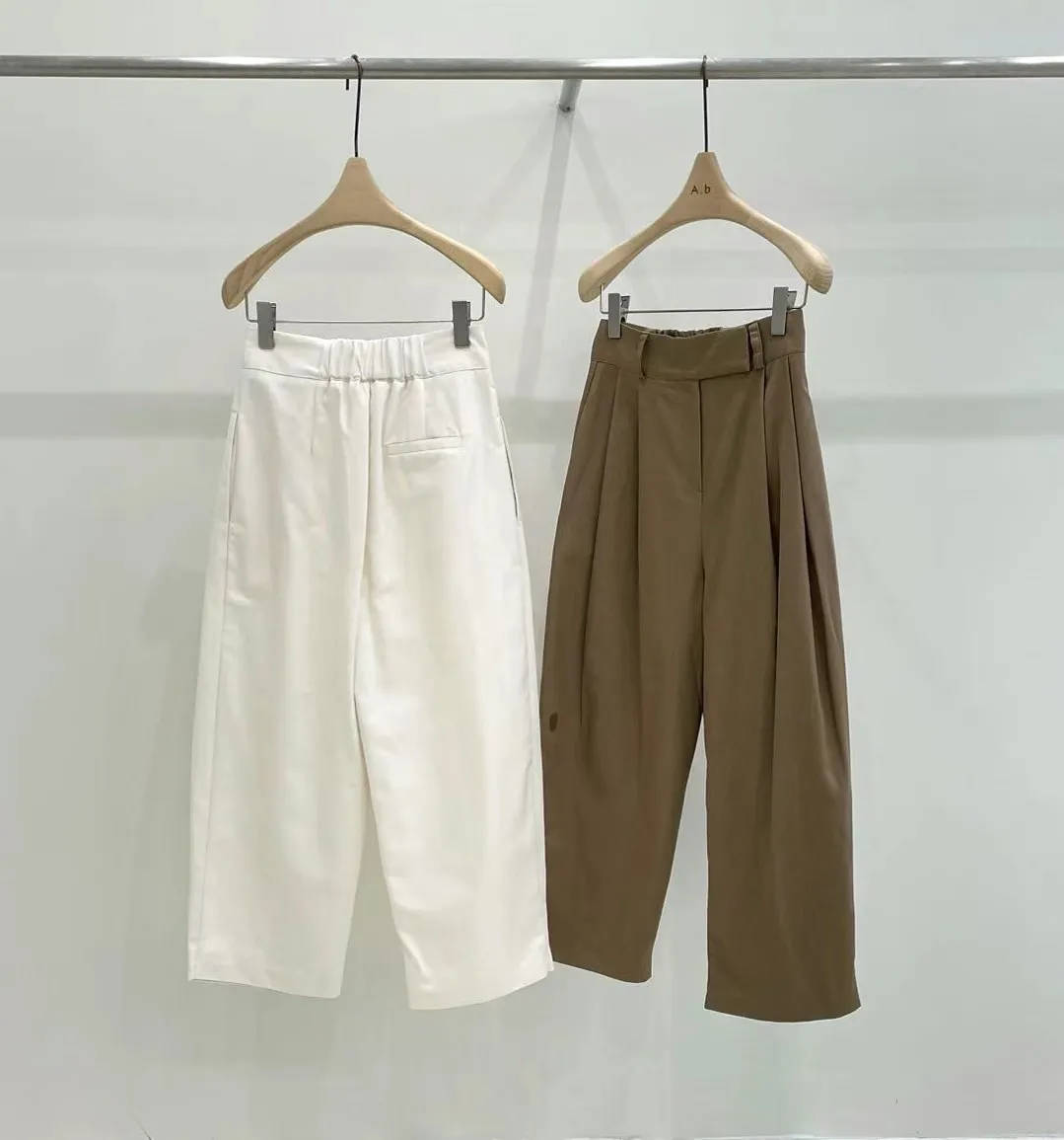 B217 挺料前壓摺素面寬褲