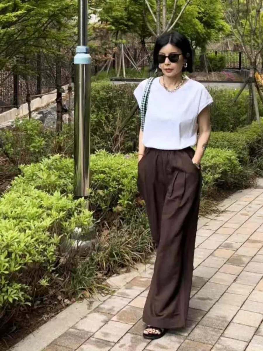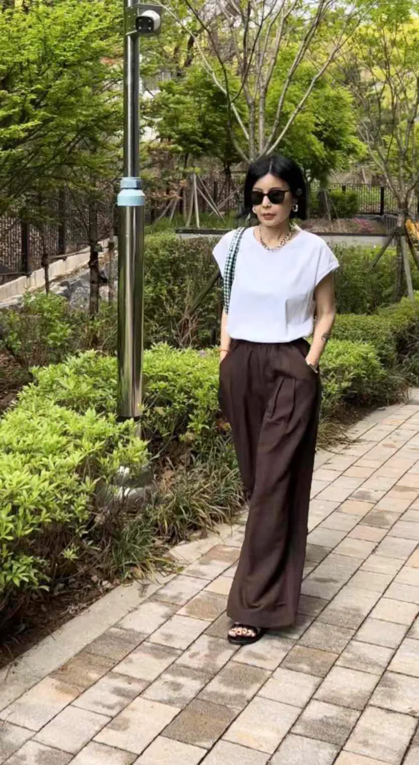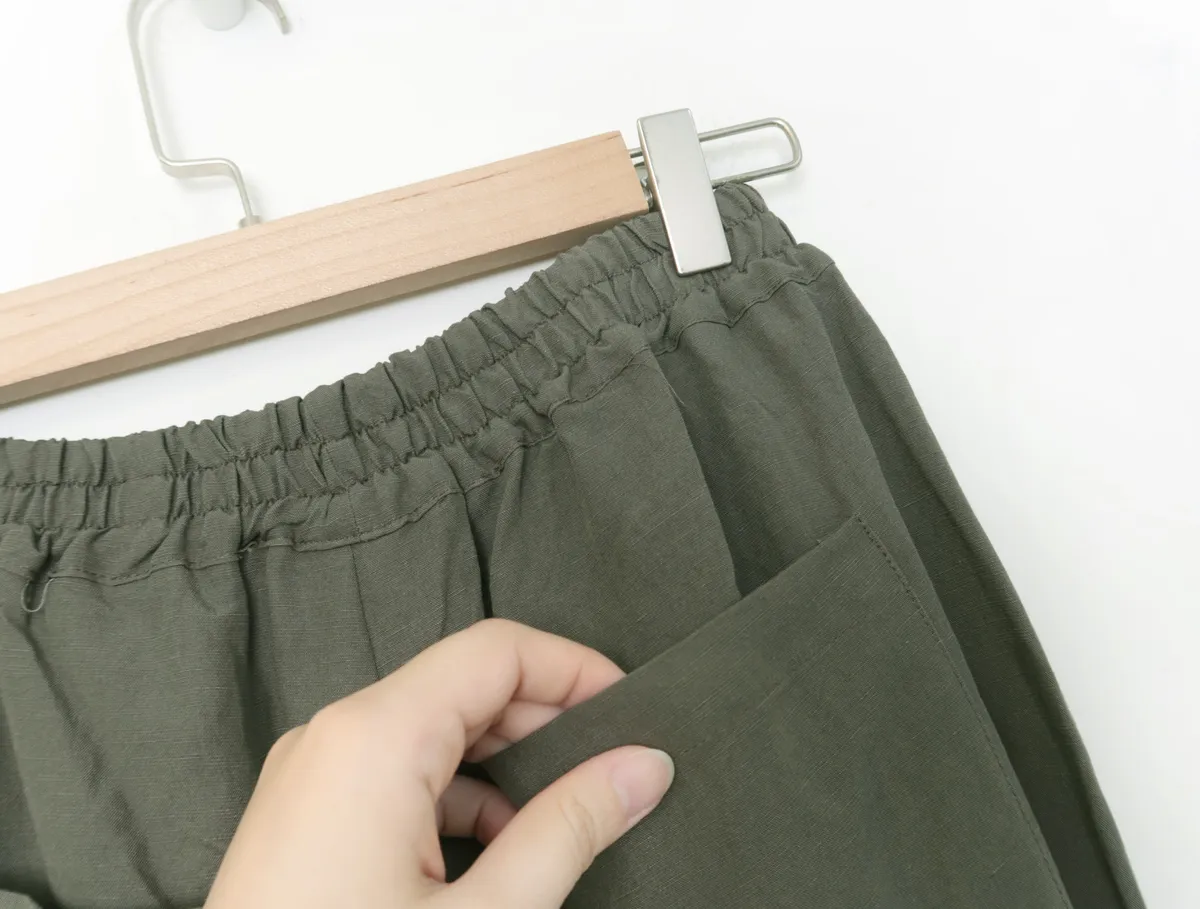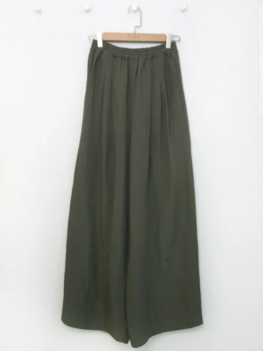 F059 腰鬆緊打摺寬褲