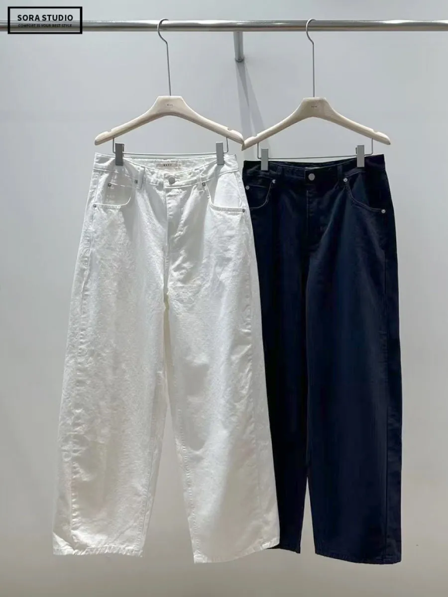 F126 純色寬鬆直筒牛仔褲