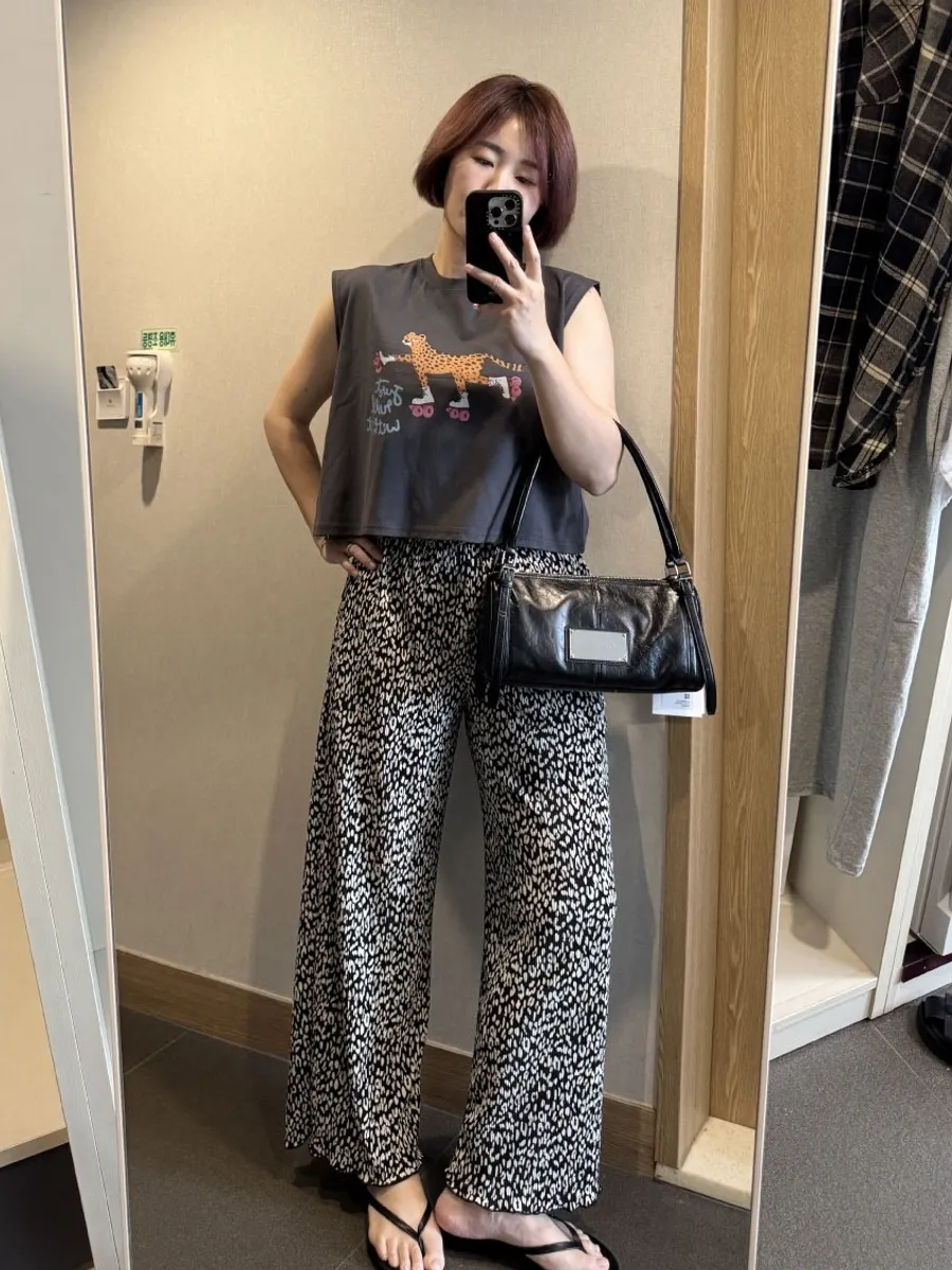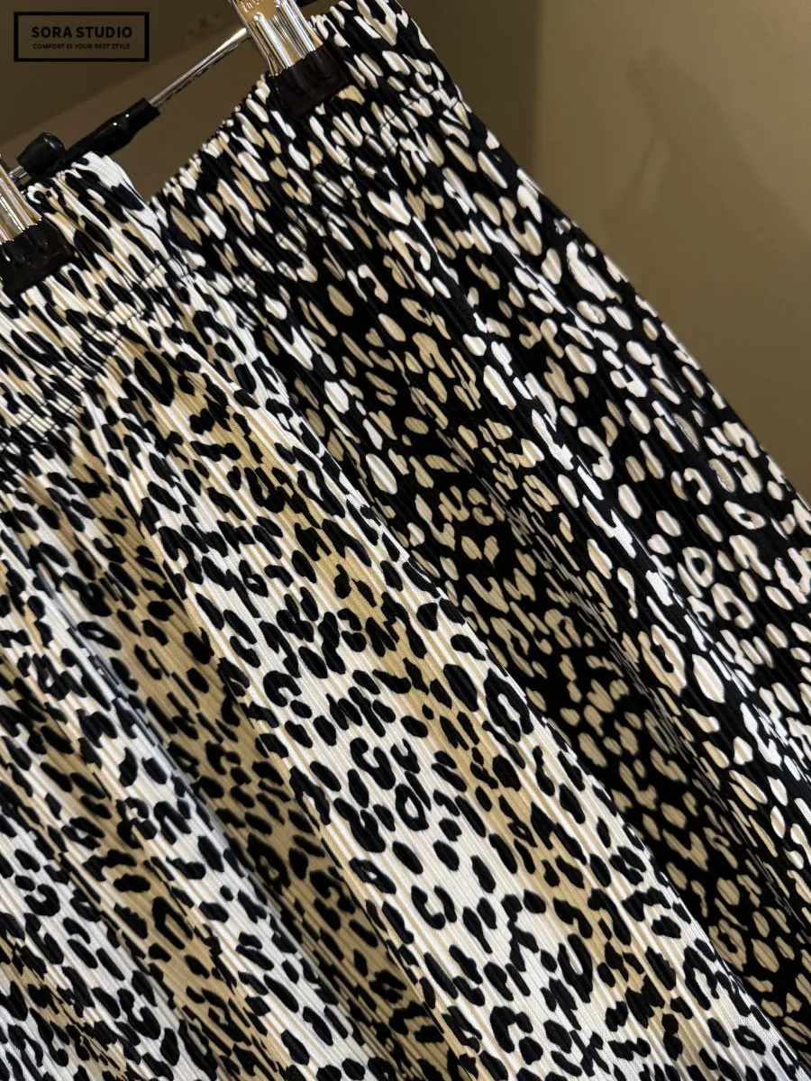 F185 請包色!豹紋捲邊細壓褶褲
