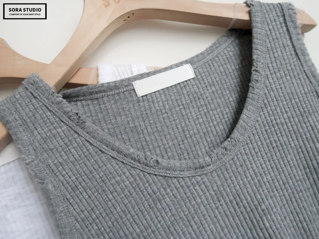 A177 刷破直坑條背心