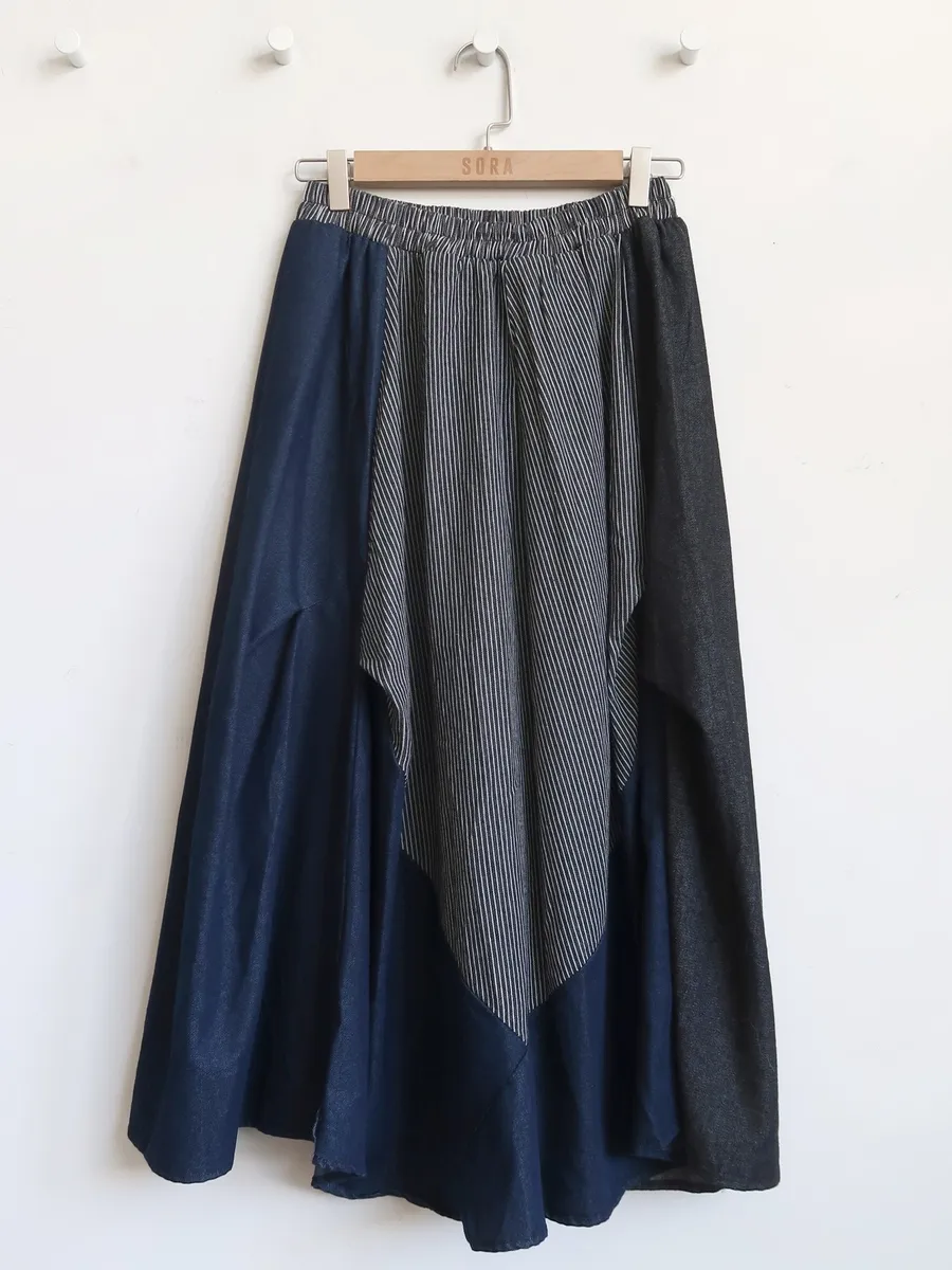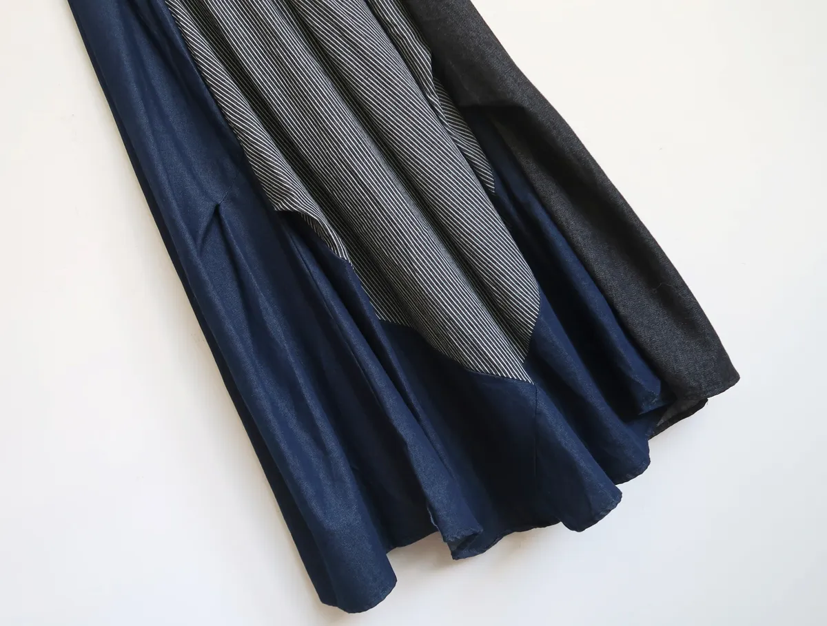 H164 造型感拼接牛仔裙