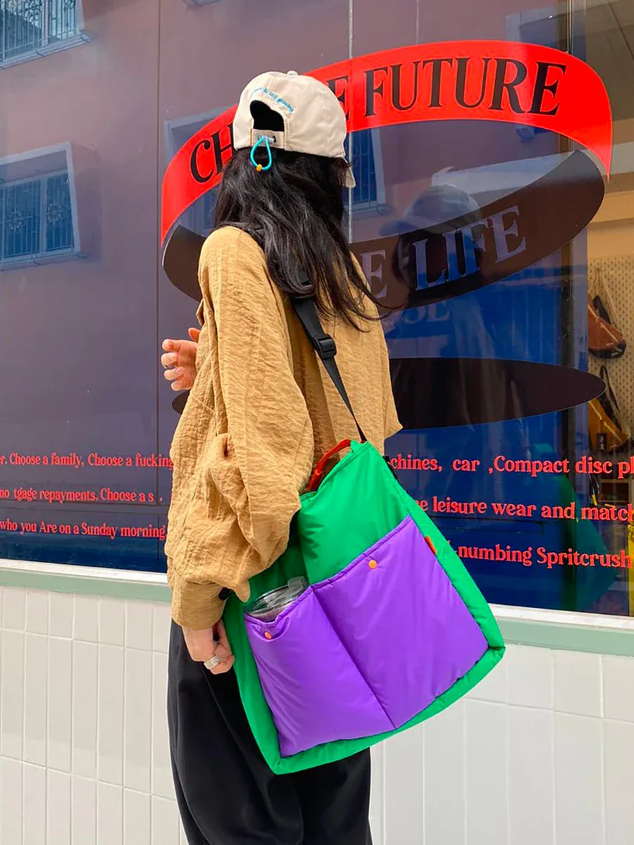 T244 jap.fac撞色鋪棉大方包