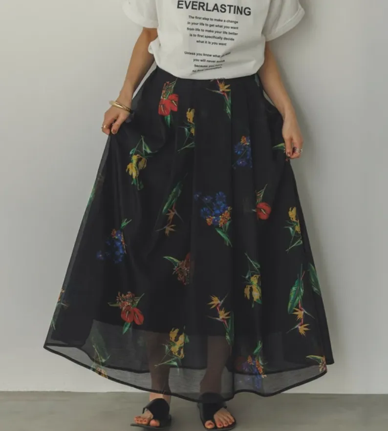 J025 印花薄紗傘裙